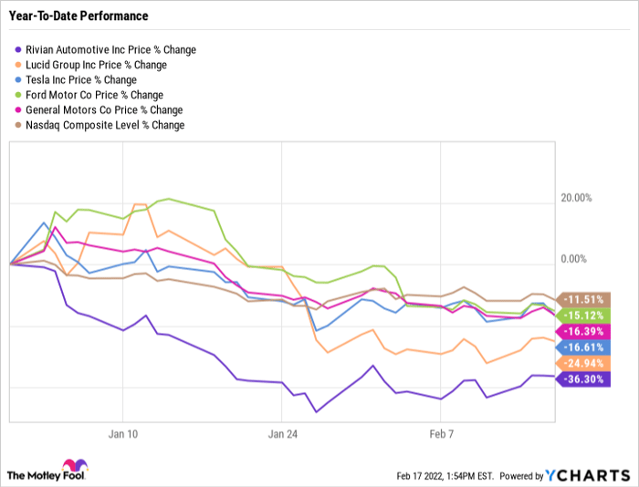 Rivian shares down more than 17 following report of Ford sell-off. The Rivian Automotive Inc. Rivian Stock Is Too Discounted to Ignore Rivian is down sharply from its nearly 180 peak February 18 2022 By Chris Lau InvestorPlace Contributor Feb 18 2022 409 pm EDT February 18 2022.