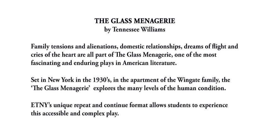 Nobody not even the rain has such small hands. Paint a mural with both abstract and realistic qualities to depict a scene from THE GLASS MENAGERIE6. Check Pages 1-18 of The Glass Menagerie - Welcome - English Department in the flip PDF version.